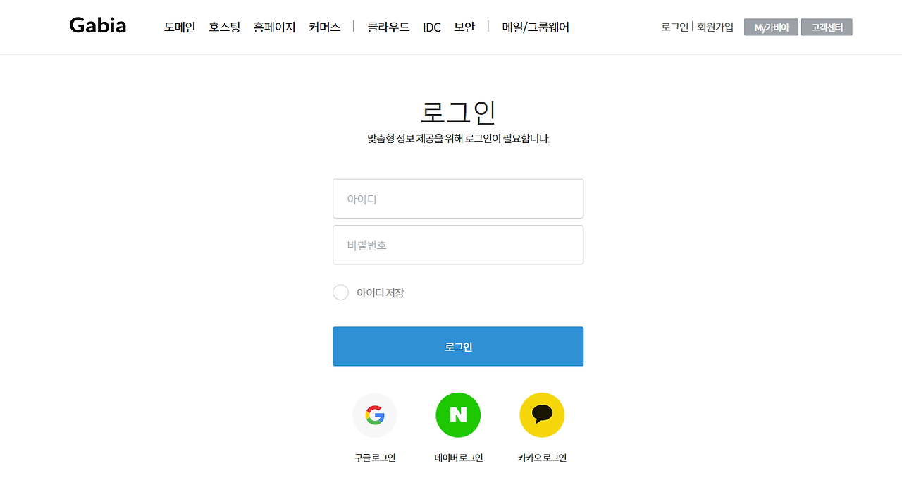 - 가비아 공식 홈페이지에 접속합니다.