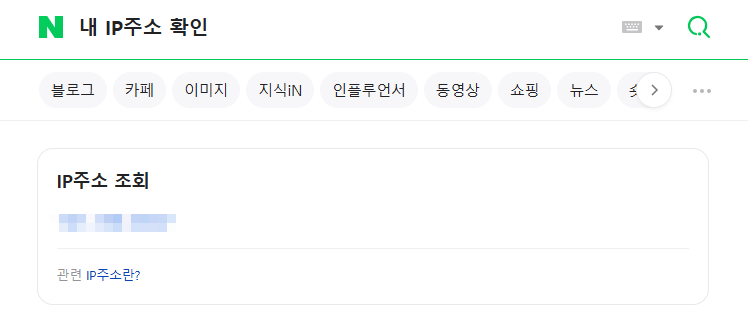네이버 검색창에 “내 IP주소 확인” 입력 - 표시된 IP를 그대로 복사하여 입력란에 붙여넣습니다.
