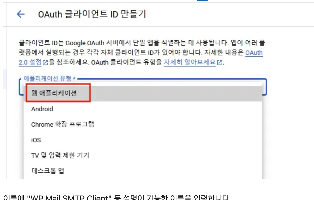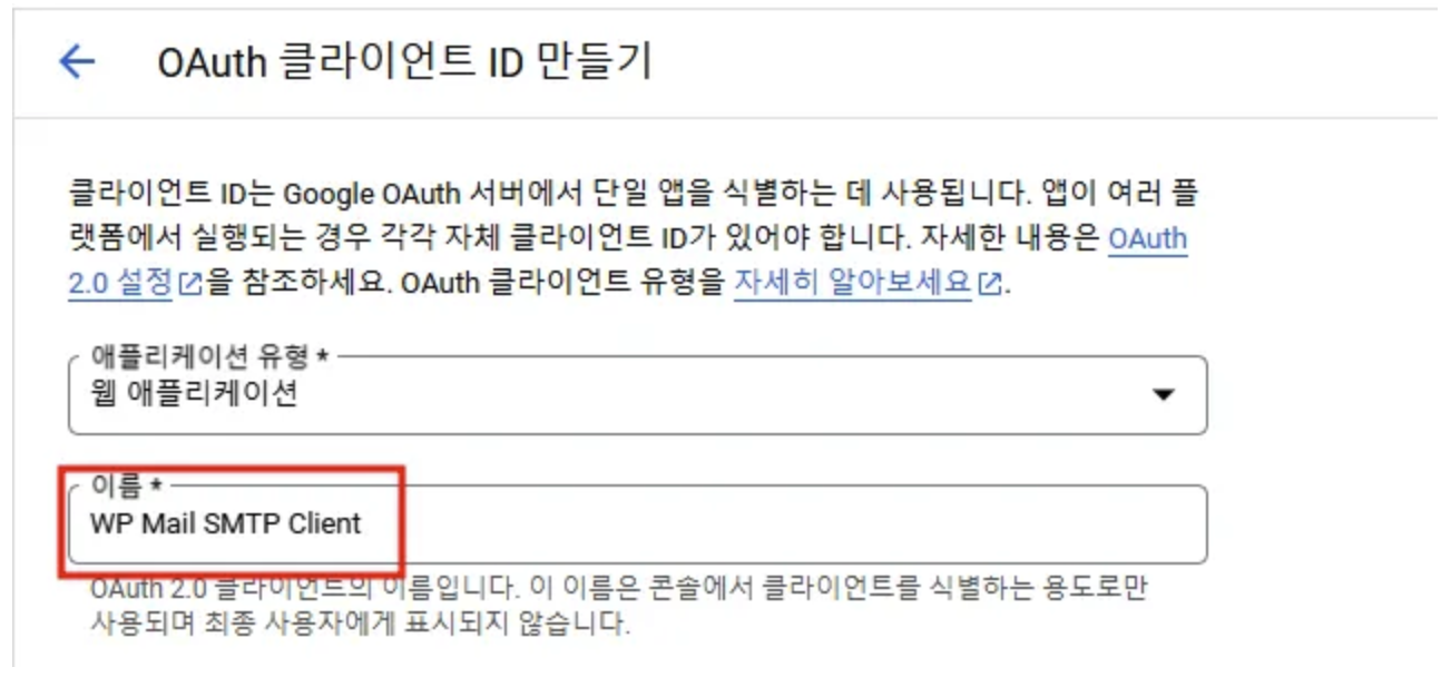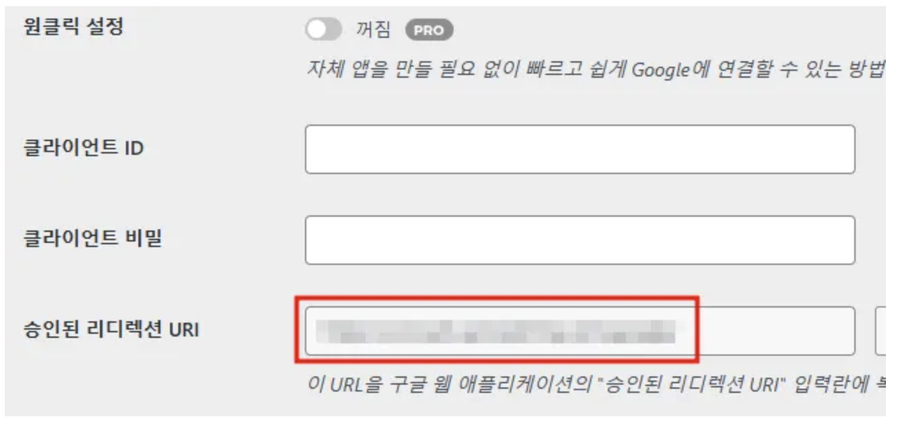 → WP Mail SMTP 설정창에 표시된 Redirect URL을 그대로 입력