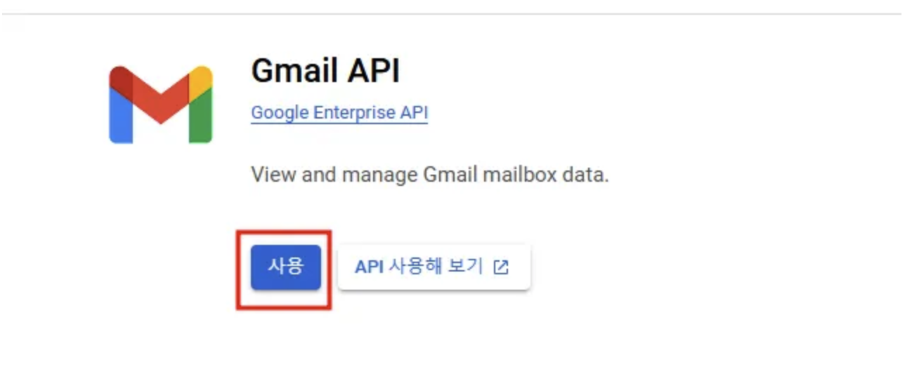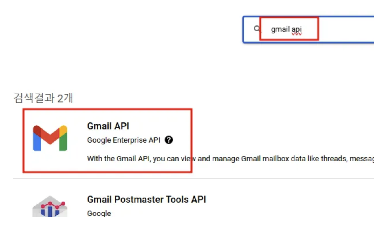- 검색창에 “Gmail API” 입력
