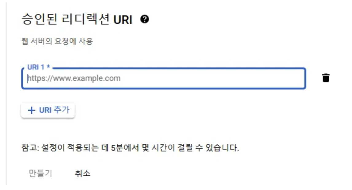 - 승인된 리디렉션 URI 항목에