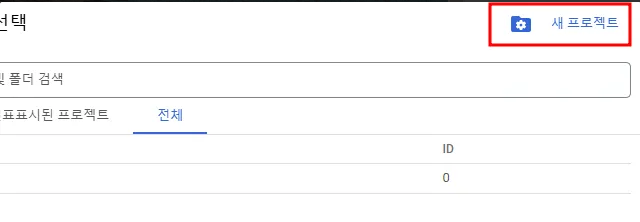 - 우측 상단 새 프로젝트 만들기 버튼 클릭