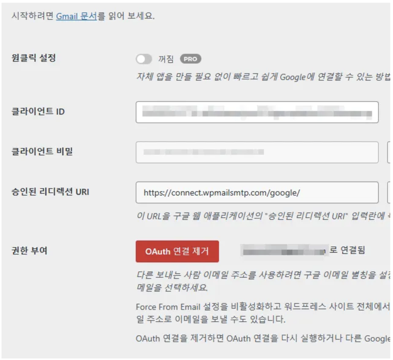 - 이름 : WP Mail SMTP Client 입력