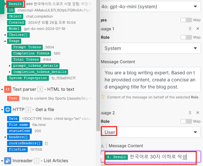 이전 글에서는 Make에서 Inoreader → HTTP → Text Parser 모듈을 연결해,