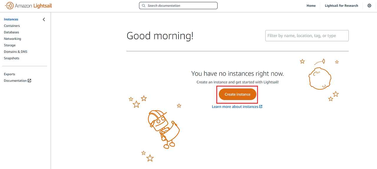 1. AWS 콘솔 검색창에 Lightsail 입력 → 서비스 선택