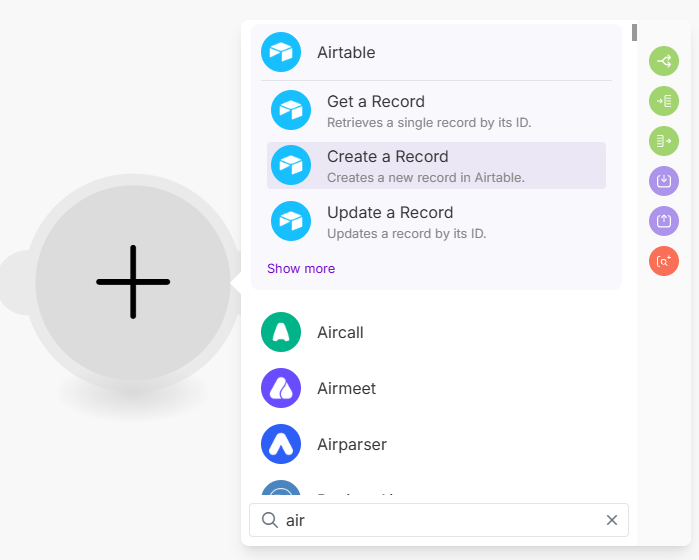 2. Airtable 선택 → “Create a Record” 모듈을 추가합니다.