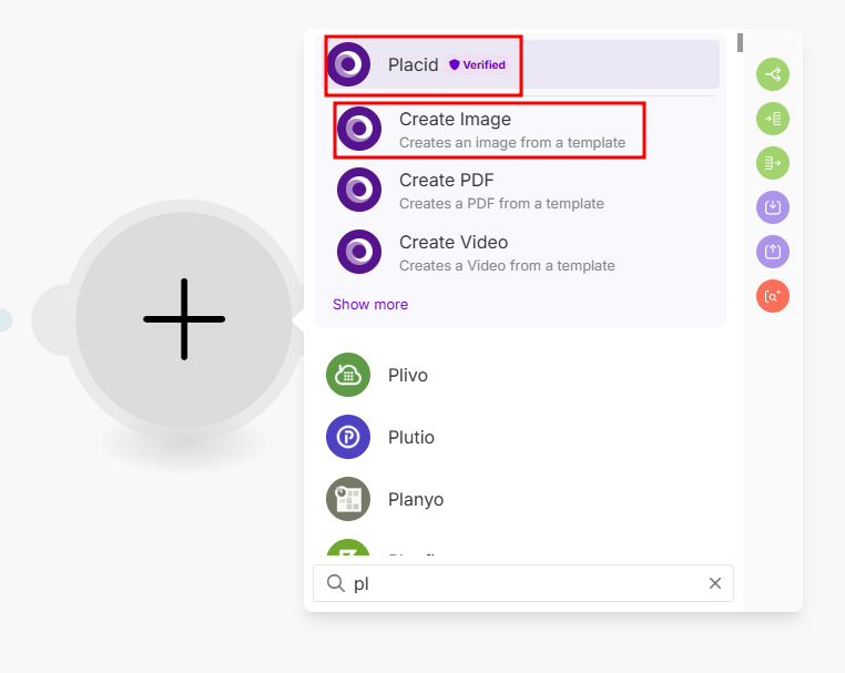 - 다음 단계로 Placid → Create Image 모듈을 추가합니다.