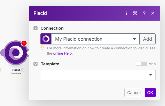 - Connection에서 Create a connection → Placid API 토큰 붙여넣기 → 저장